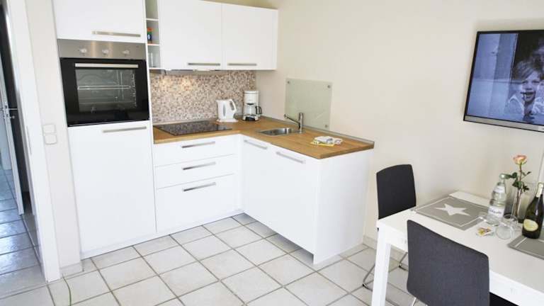 Die Ferienwohnung hat 2 Schlafzimmer, einen TV und eine gut ausgestattete Küche mit Kühlschrank und Geschirrspüler. Ein Badezimmer mit Dusche ist vorhanden. Handtücher und Bettwäsche werden bereitgestellt.