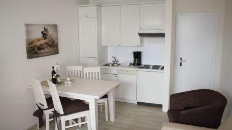 Die Ferienwohnung umfasst ein Schlafzimmer, ein Wohnzimmer mit TV sowie eine voll ausgestattete Küche mit Kühlschrank und Geschirrspüler. Handtücher und Bettwäsche werden zur Verfügung gestellt.
