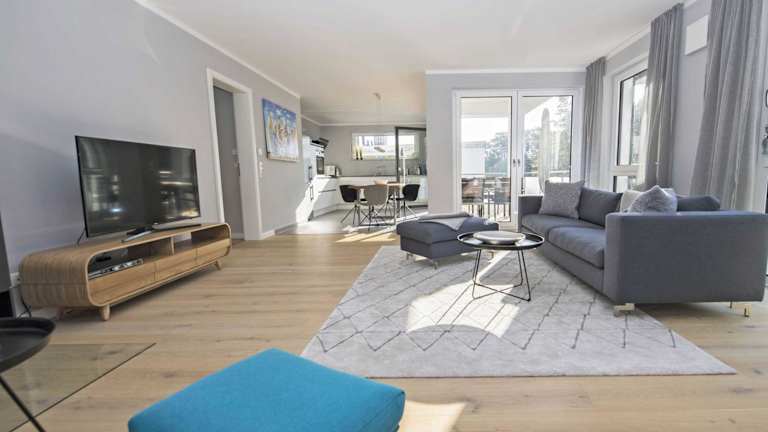 Das Penthouse verfügt über eine Küchenzeile mit Kühlschrank, Kaffeemaschine, Geschirrspüler, Ofen, Mikrowelle und Wasserkocher. Ein TV ist ebenfalls vorhanden, ebenso ein eigenes Badezimmer mit Dusche und Badewanne.