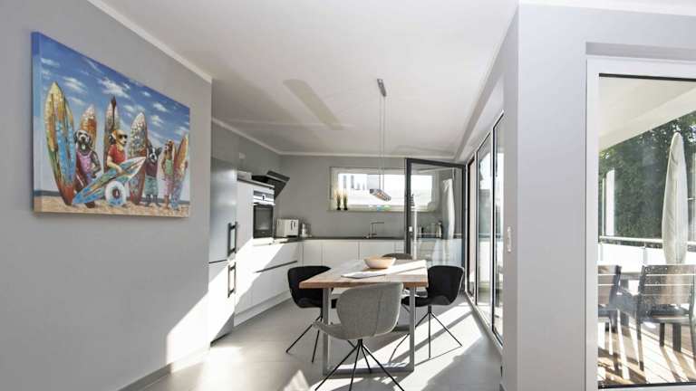 Die Unterkunft Haus Königsstuhl bietet ein Penthouse mit einem heimeligen Kamin und einem Balkon. WLAN kann kostenfrei genutzt werden. Die Ausstattung umfasst eine voll ausgestattete Küchenzeile und ein eigenes Badezimmer.