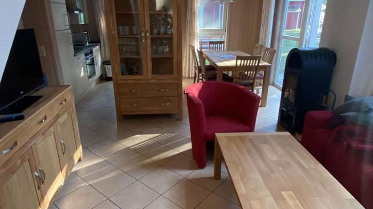Das Ferienhaus umfasst 3 Schlafzimmer, eine gut ausgestattete Küche mit Kühlschrank und Geschirrspüler sowie 2 Badezimmer mit Dusche, Haartrockner und Waschmaschine. Zur technischen Ausstattung zählen ein TV und ein DVD-Player.