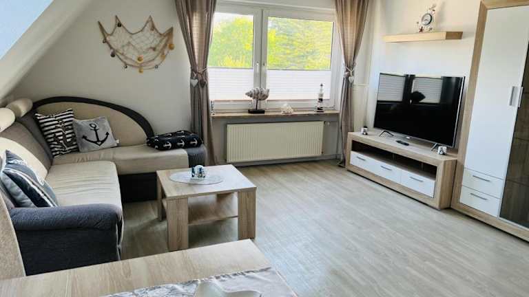Die Ferienwohnung Haus Larum App. 5 verfügt über ein Schlafzimmer und bietet verschiedene Annehmlichkeiten, wie kostenloses WLAN und Kabel TV. Die Küche ist mit einem Kühlschrank und einem Geschirrspüler ausgestattet.