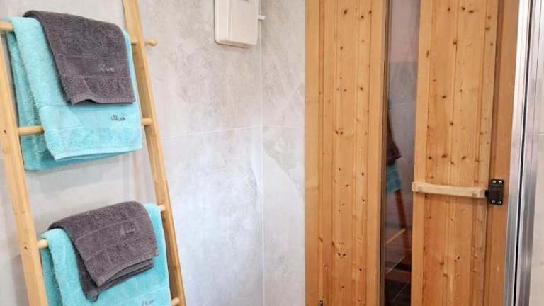 Die Ferienwohnung besteht aus 2 Schlafzimmern, einem Wohnzimmer, einer voll ausgestatteten Küche mit Kühlschrank und Kaffeemaschine sowie einem Badezimmer mit Dusche und Haartrockner. Handtücher und Bettwäsche werden bereitgestellt. Die Unterkunft bietet zudem eine Terrasse und eine Sauna zur Entspannung.