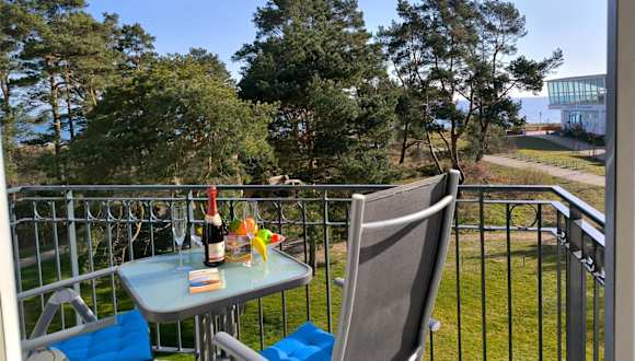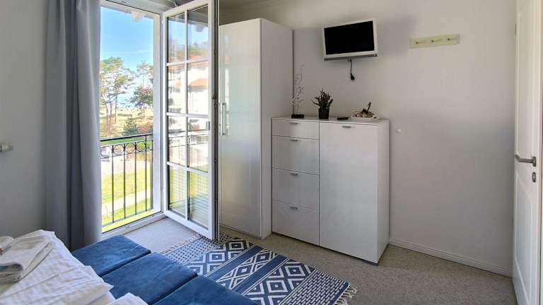 Haus Meeresblick - Ferienwohnung Strandloeper C 2.02 bietet Übernachtungsmöglichkeiten mit einem Balkon und Meerblick. Die Ferienwohnung hat ein Schlafzimmer, ein Wohnzimmer sowie ein Badezimmer mit einer Dusche. Das Haus verfügt über einen Innenpool, eine Sauna sowie einen Garten.