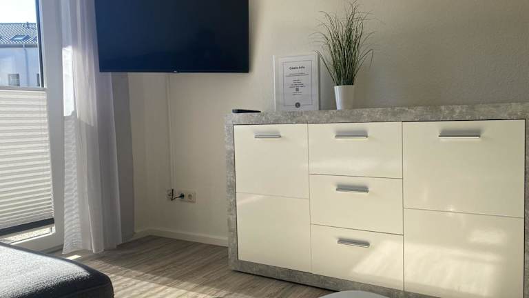 Die Ferienwohnung verfügt über 2 Schlafzimmer, einen TV und eine voll ausgestattete Küche. In der Küche stehen ein Kühlschrank, ein Geschirrspüler, eine Waschmaschine, ein Ofen sowie eine Herdplatte zur Verfügung.