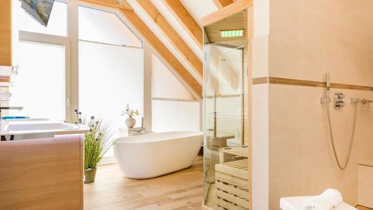 Die Unterkunft Haus Meeresleuchten mit Sauna- und Erlebnisbadnutzung befindet sich in der Region Rügen, nahe der Selliner Südstrand und dem Strand im Ostseebad Sellin.