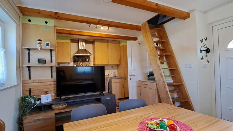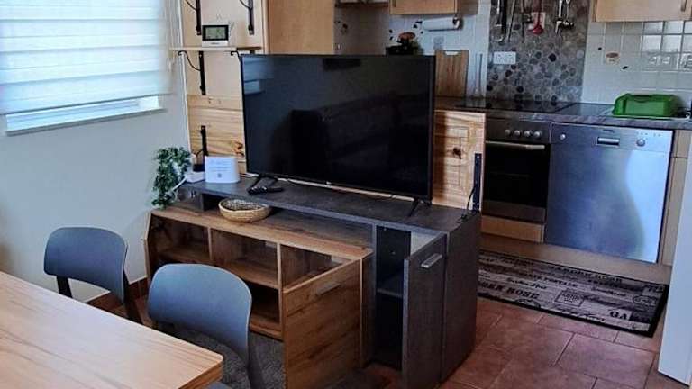 Das Ferienhaus verfügt über ein Schlafzimmer und ist ausgestattet mit einer Küche, die einen Kühlschrank und einen Geschirrspüler umfasst. Ein Flachbild-TV, ein Sitzbereich und ein Badezimmer mit Dusche sind ebenfalls vorhanden. Die Unterkunft bietet zudem eine Kaffeemaschine und einen Kinderspielplatz.