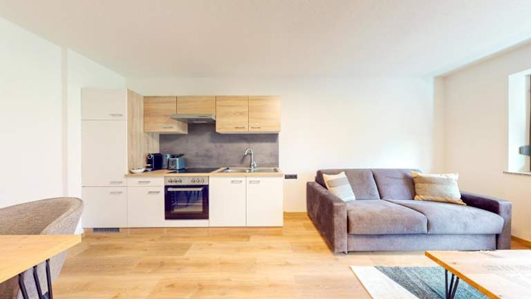 Die Zimmer im Haus Moritz verfügen über einen Balkon mit Bergblick, einen Sitzbereich sowie einen Satelliten Flachbild-TV. Jede Unterkunft ist mit einer voll ausgestatteten Küche versehen, die einen Kühlschrank, Geschirrspüler, Mikrowelle, Herdplatte, Ofen, Kaffeemaschine und Wasserkocher umfasst. Darüber hinaus steht ein eigenes Badezimmer mit Dusche und Haartrockner zur Verfügung.