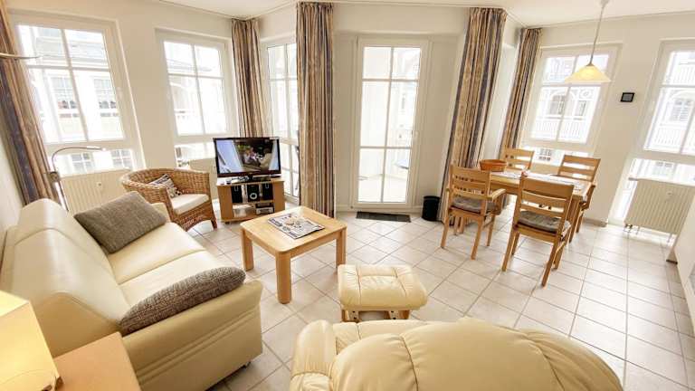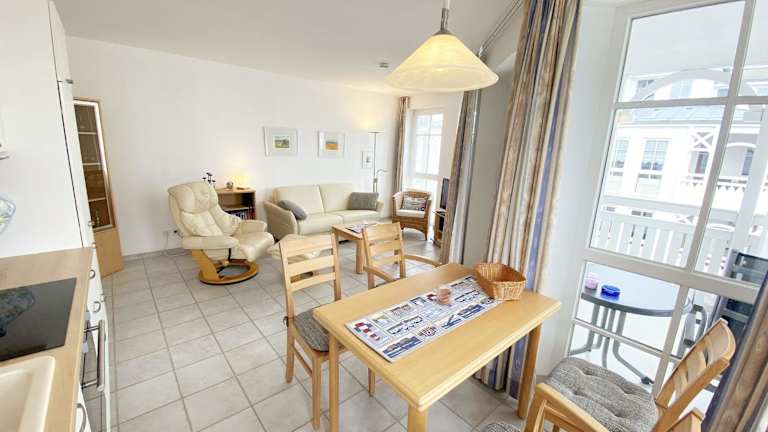 Haus Moritzdorf - Ferienwohnung 447 bietet eine Ferienwohnung mit Balkon im Seepark Sellin. Die Wohnung ist geeignet für Aufenthalt von Gästen und umfasst moderne Annehmlichkeiten sowie einen Balkon zur persönlichen Nutzung. Die Unterkunft ist eine Nichtraucherzone und ist familienfreundlich gestaltet.