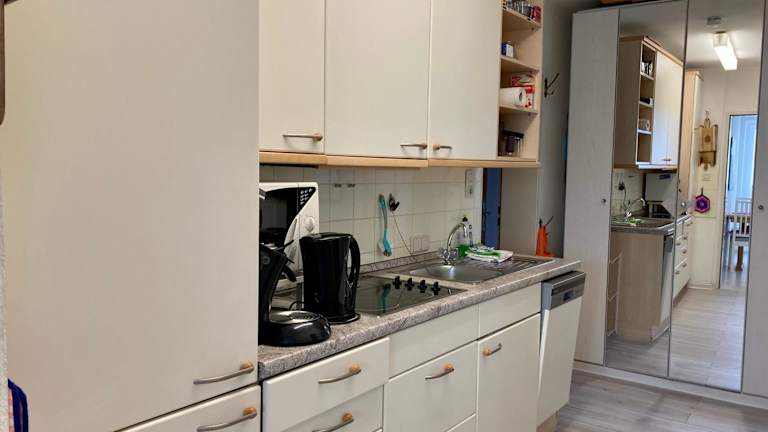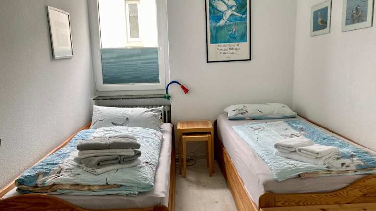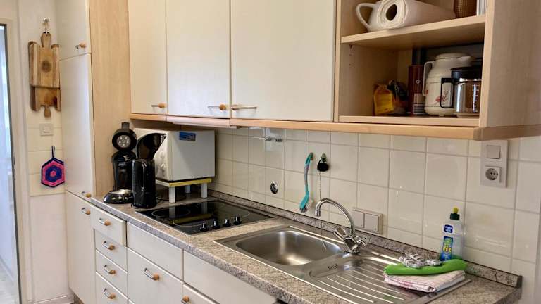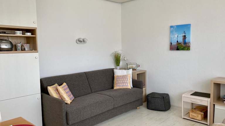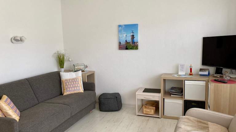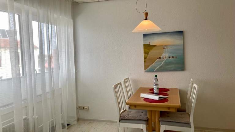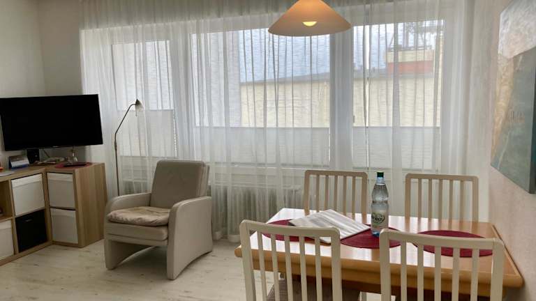 Die Ferienwohnung umfasst einen Balkon, ein Schlafzimmer, ein Wohnzimmer sowie eine gut ausgestattete Küche mit Kühlschrank und Geschirrspüler. Zudem werden Handtücher und Bettwäsche bereitgestellt.
