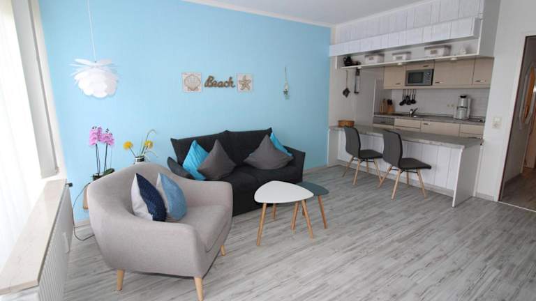 Die Unterkunft bietet ein Wohnzimmer, das mit einem TV ausgestattet ist. Die Wohnung ist ideal für Gäste, die Privatsphäre und eine eigene Küche wünschen. Es gibt parkieren vor Ort und die Unterkunft bietet Gartenmöbel zur Nutzung.