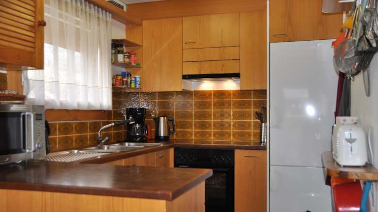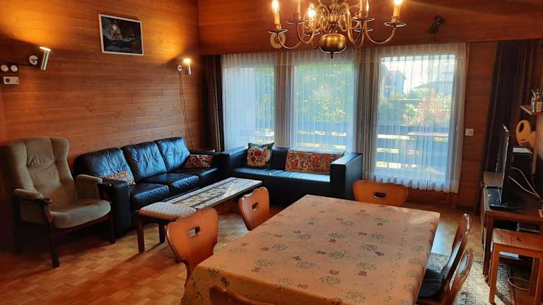 Das Ferienhaus bietet Platz für bis zu 6 Personen und verfügt über 3 Schlafzimmer, ein Wohnzimmer mit Flachbild-TV, eine gut ausgestattete Küche mit Kühlschrank und Ofen sowie ein Badezimmer mit Dusche. Eine Terrasse mit Bergblick lädt zum Verweilen ein. Für zusätzlichen Komfort können Handtücher und Bettwäsche gegen Aufpreis bereitgestellt werden.