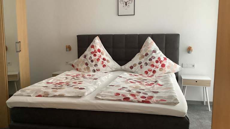 Die Ferienwohnung bietet Platz für bis zu vier Personen und verfügt über zwei Schlafzimmer, ein Wohnzimmer sowie eine gut ausgestattete Küche mit Kühlschrank und Geschirrspüler. Ein Badezimmer mit Dusche sowie ein Balkon mit Stadtblick sind ebenfalls vorhanden. Handtücher und Bettwäsche werden bereitgestellt. Die Unterkunft ist zudem eine Nichtraucherunterkunft.