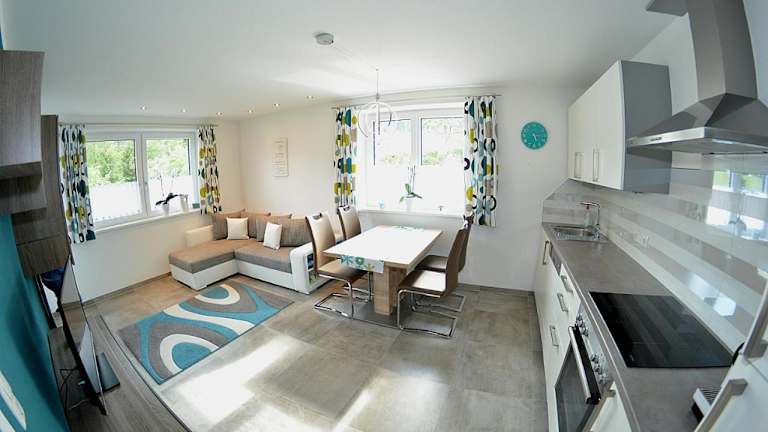 Die Zimmer im Haus Panorama verfügen über einen Balkon mit Bergblick sowie einen Sitzbereich. Zur Ausstattung gehören ein Satelliten Flachbild-TV und eine voll ausgestattete Küche, die Kühlschrank, Geschirrspüler, Ofen, Mikrowelle und Herdplatte umfasst. Das eigene Badezimmer ist mit einer Dusche und einem Haartrockner ausgestattet. Zusätzlich stehen eine Kaffeemaschine und ein Wasserkocher zur Verfügung.