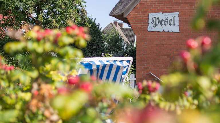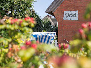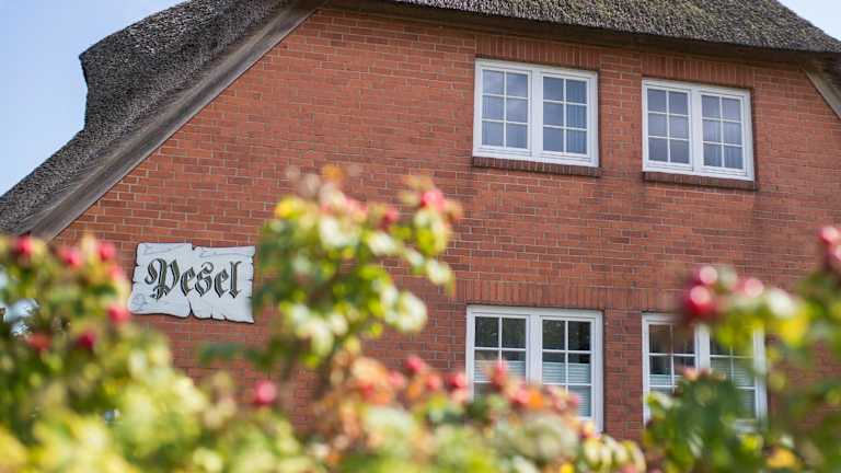 Das Haus Pesel - Abendsonne befindet sich in Norddorf auf der Insel Amrum, in der Nähe von Amrumer Odde, der Windmühle und dem Amrumer Leuchtturm.