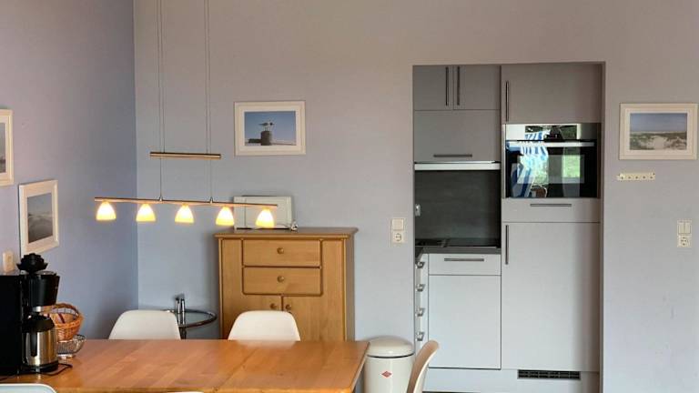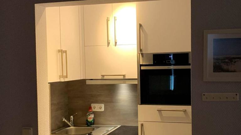 Die Ferienwohnung bietet ein Schlafzimmer und ein Wohnzimmer mit einem TV. Eine voll ausgestattete Küche mit Kühlschrank und Geschirrspüler ist ebenfalls vorhanden, sowie ein Badezimmer mit Dusche. Handtücher und Bettwäsche werden bereitgestellt.