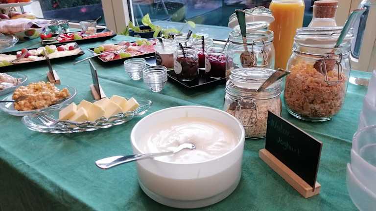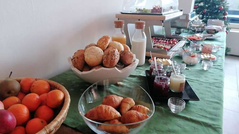 In der Unterkunft wird ein kontinentales oder vegetarisches Frühstück in Buffetform angeboten. Es gibt ein Café vor Ort.