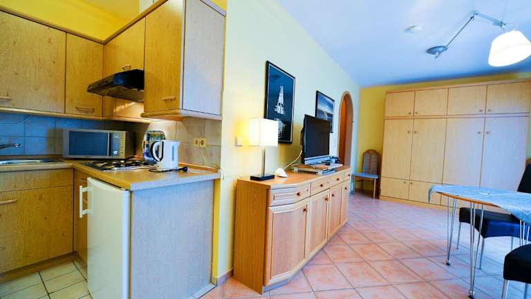 Die Ferienwohnung ist mit einem Wohnzimmer und einer voll ausgestatteten Küche eingerichtet. Zur Ausstattung gehören ein Kühlschrank, eine Mikrowelle und ein TV. Ein Wäschepaket kann gegen Gebühr ausgeliehen werden, und die Unterkunft bietet die Möglichkeit, die Betten zu beziehen (gegen Gebühr). Nichtraucherzimmer sind ebenfalls verfügbar.