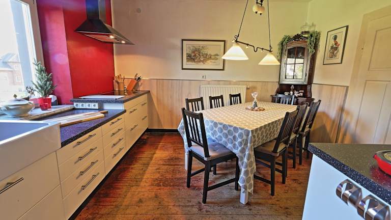 Das Ferienhaus bietet Platz mit vier Schlafzimmern und einem Wohnzimmer. Die Zimmer sind komfortabel eingerichtet und verfügen über einen Flachbild-TV sowie drei Badezimmer mit Duschen. Die gut ausgestattete Küche beinhaltet einen Kühlschrank und einen Geschirrspüler und sorgt für Bequemlichkeit während des Aufenthalts.