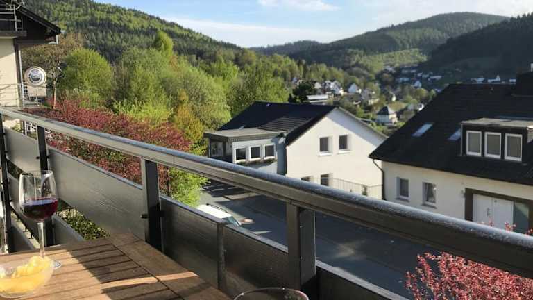 Das Haus Schöne Aussicht liegt in Winterberg/Niedersfeld, etwa 14 km von Kahler Asten entfernt. In der Umgebung befinden sich die St.-Georg-Schanze (10 km) und die Mühlenkopfschanze (24 km). Der nächstgelegene Flughafen ist der Flughafen Paderborn-Lippstadt, welcher sich 52 km von der Unterkunft befindet.