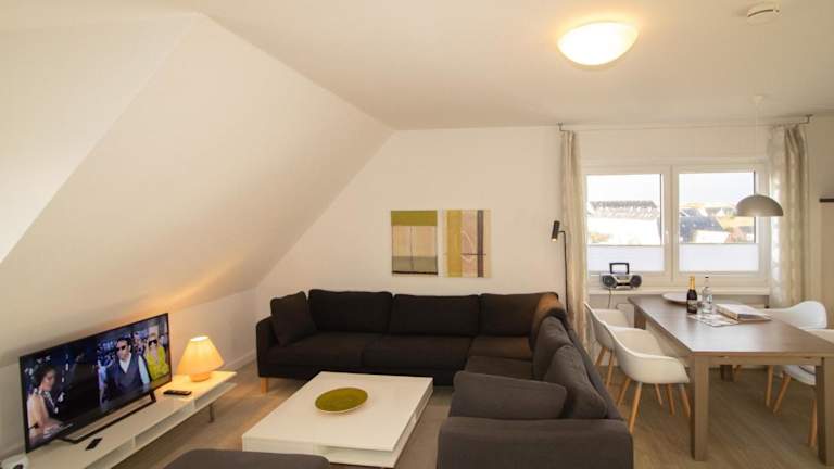 Das Apartment verfügt über zwei komfortable Schlafzimmer, in denen Sie sich nach einem langen Tag entspannen können. Die voll ausgestattete Küche bietet alles, was Sie für die Zubereitung Ihrer Mahlzeiten benötigen, einschließlich eines Geschirrspülers, eines Backofens, einer Waschmaschine, einer Mikrowelle und eines Kühlschranks. Der Wohnbereich ist gemütlich und mit Sat-TV ausgestattet. Kostenloses WLAN ist ebenfalls verfügbar.
