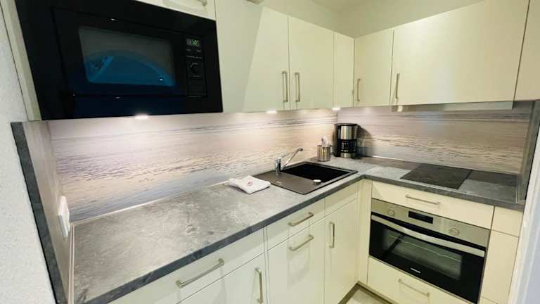 Die Ferienwohnung umfasst zwei Schlafzimmer und ist ausgestattet mit einem Balkon, einem Wasserkocher sowie einer Küche mit Kühlschrank und Geschirrspüler. Kostenloses Wifi ist ebenfalls vorhanden. Für zusätzlichen Komfort können auf Anfrage gegen Aufpreis Handtücher und Bettwäsche bereitgestellt werden.
