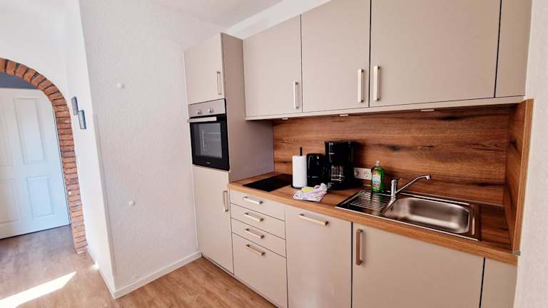 Die Ferienwohnung verfügt über eine Küche mit einem Kühlschrank und einem Geschirrspüler, sodass Gäste die Möglichkeit haben, ihre eigenen Mahlzeiten zuzubereiten. Handtücher und Bettwäsche werden zur Verfügung gestellt.