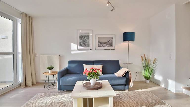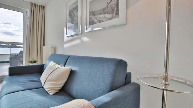 Die Ferienwohnung umfasst einen Balkon, ein Schlafzimmer, ein Wohnzimmer sowie eine gut ausgestattete Küche, die über einen Kühlschrank und einen Geschirrspüler verfügt. Zur Unterhaltung stehen den Gästen ein TV und ein Blu-ray-Player zur Verfügung.