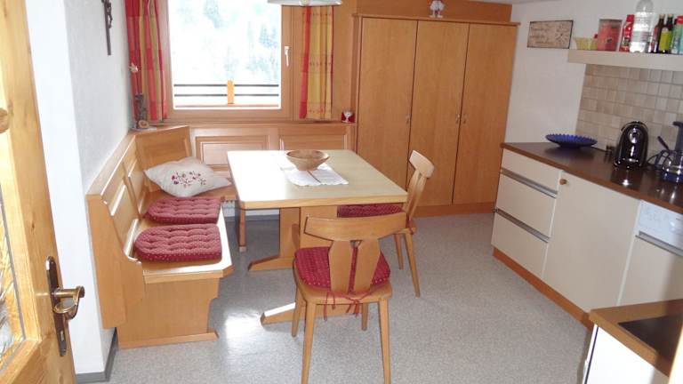 Die Ferienwohnung im Haus Sonnegg verfügt über ein Schlafzimmer und ein Wohnzimmer, welches mit einem Flachbild-TV ausgestattet ist. In der gut ausgestatteten Küche stehen ein Kühlschrank und ein Geschirrspüler zur Verfügung. Zudem gibt es ein Badezimmer mit einer Dusche. Handtücher und Bettwäsche werden bereitgestellt, und der Balkon bietet einen herrlichen Blick auf die Berge.