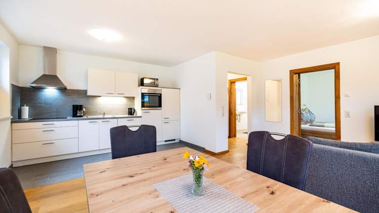 Die Ferienwohnung umfasst ein Schlafzimmer, ein Badezimmer mit Dusche, einen TV mit Kabelkanälen, sowie eine gut ausgestattete Küche, die über einen Kühlschrank und einen Geschirrspüler verfügt. Handtücher und Bettwäsche werden zur Verfügung gestellt.