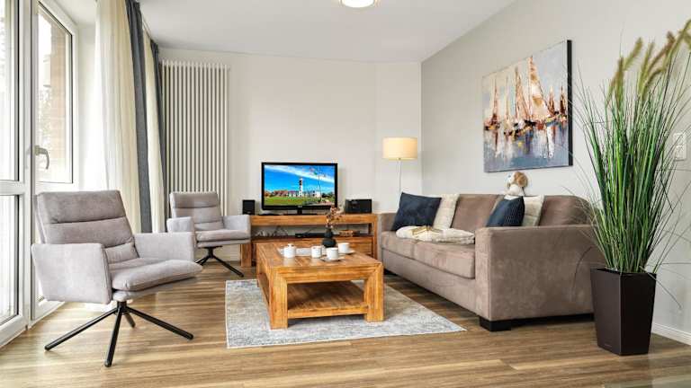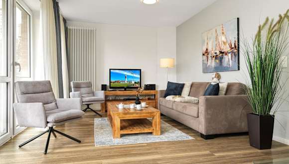 Die Ferienwohnung beinhaltet 2 Schlafzimmer, eine gut ausgestattete Küche mit Kühlschrank und Geschirrspüler sowie ein Wohnzimmer mit TV. Bei Bedarf können Bettwäsche und Handtücher gegen eine zusätzliche Gebühr gemietet werden oder die Gäste bringen ihre eigene Wäsche mit.