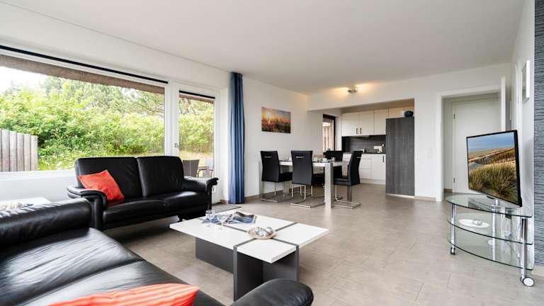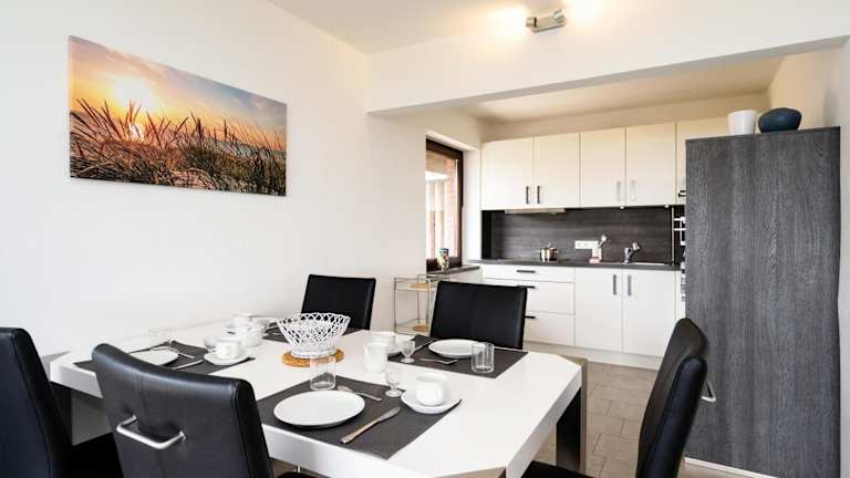 Die Ferienwohnung besteht aus zwei Schlafzimmern und einem Wohnzimmer. Sie hat eine gut ausgestattete Küche mit Kühlschrank und Geschirrspüler. Ein TV sorgt für Unterhaltung. Bettwäsche und Handtücher sind nicht im Preis enthalten, Gäste müssen diese mitbringen oder können sie gegen Gebühr ausleihen.