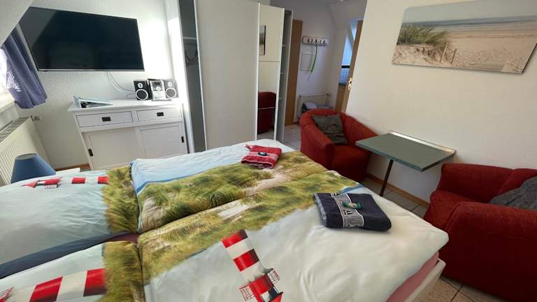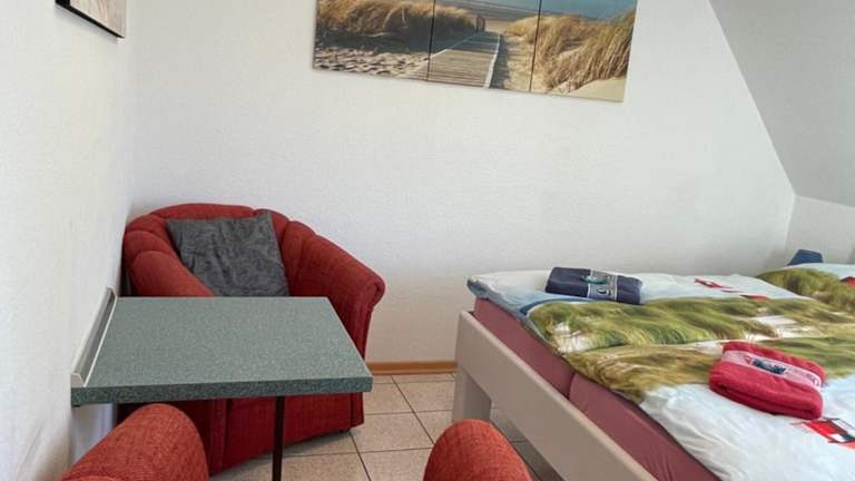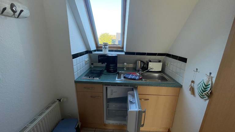 Die Ferienwohnung umfasst ein Schlafzimmer und ist mit einem Flachbild-TV ausgestattet, der über Satellitenkanäle verfügt. Eine gut ausgestattete Küchenzeile mit Kühlschrank und Herdplatte ist ebenfalls vorhanden. Das Bad ist mit einer Dusche ausgestattet. Handtücher und Bettwäsche werden bereitgestellt.
