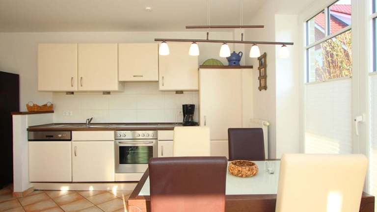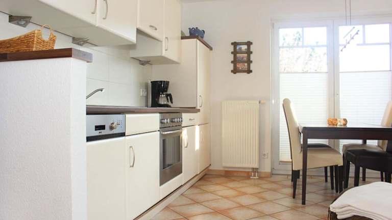 Die Ferienwohnung verfügt über eine voll ausgestattete Küche mit Kühlschrank und Kaffeemaschine. Grillmöglichkeiten sind vorhanden, um das Grillen bei schönem Wetter zu ermöglichen.