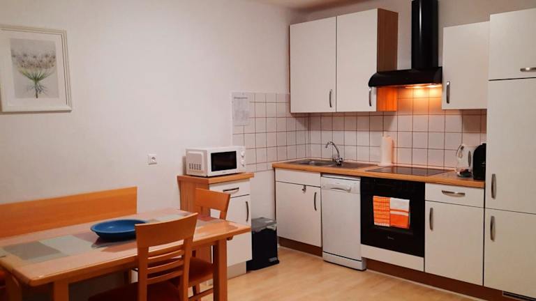 Die Ferienwohnung ist klimatisiert und umfasst zwei Schlafzimmer, ein Wohnzimmer sowie eine voll ausgestattete Küche mit Kühlschrank und Kaffeemaschine. Das Badezimmer ist mit einer Dusche und einem Haartrockner ausgestattet. In der Unterkunft werden Handtücher und Bettwäsche bereitgestellt.