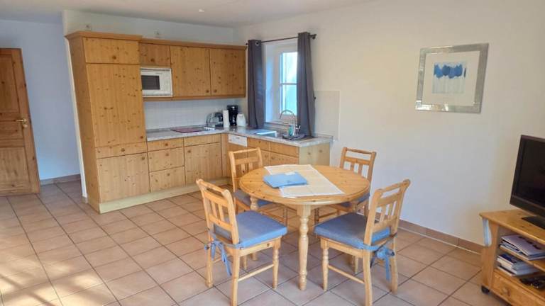 Die Zimmer in Haus Wieck auf dem Darss verfügen über einen Sitzbereich, einen Satelliten Flachbild-TV, sowie eine voll ausgestattete Küchenzeile mit Kühlschrank, Geschirrspüler, Mikrowelle, Herdplatte, Toaster, Kaffeemaschine und Wasserkocher. Des Weiteren gibt es ein eigenes Badezimmer mit Dusche und Haartrockner.