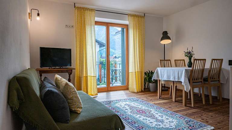 Die Ferienwohnung verfügt über einen Balkon mit Bergblick und beinhaltet ein Schlafzimmer sowie ein Wohnzimmer. Die gut ausgestattete Küchenzeile ermöglicht es den Gästen, eigene Mahlzeiten zuzubereiten. Zudem stehen ein Satelliten Flachbild-TV, ein Badezimmer mit Bidet und eine Badewanne oder Dusche zur Verfügung. Handtücher und Bettwäsche werden bereitgestellt.