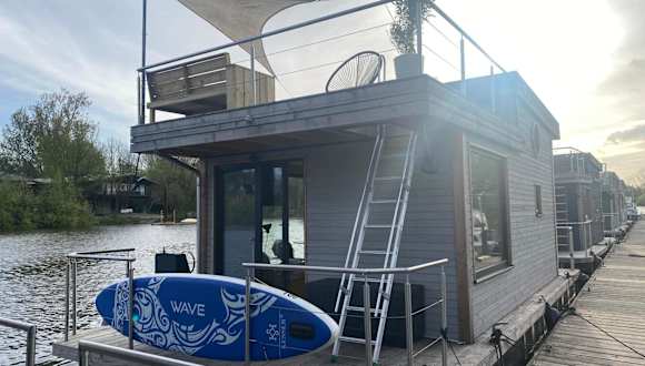 Das Hausboot verfügt über ein Schlafzimmer, ein Wohnzimmer und ein Badezimmer mit Dusche. Eine gut ausgestattete Küchenzeile beinhaltet einen Kühlschrank und eine Herdplatte. Zu den Annehmlichkeiten zählen ein Flachbild-TV sowie eine Terrasse mit Blick auf den Fluss. Handtücher und Bettwäsche werden bereitgestellt.