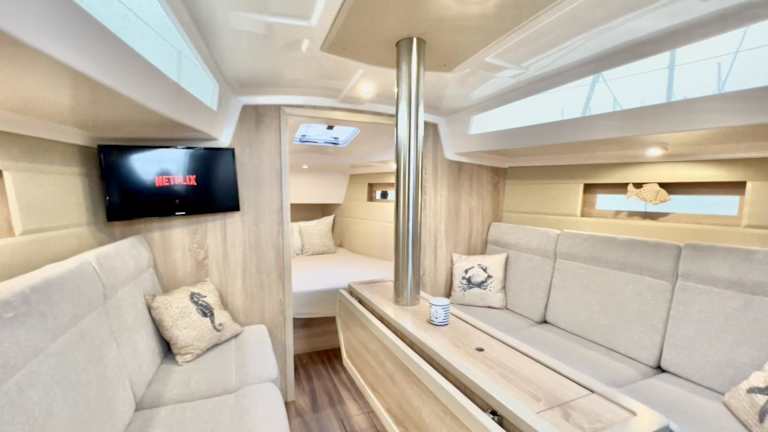 Die Unterkunft ist ausgestattet mit 2 Schlafzimmern, 1 Badezimmer, Bettwäsche und Handtüchern. Zur Ausstattung gehört auch ein TV sowie eine voll ausgestattete Küche. Zudem bietet das Hausboot eine Terrasse mit Meerblick.