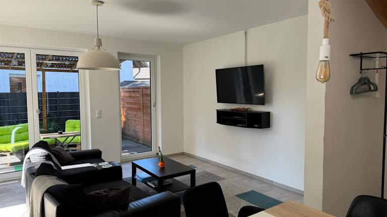 Die Unterkunft Neubau präsentiert sich als moderne Haushälfte in Hamburg mit einer einladenden Terrasse. Sie bietet Übernachtungsmöglichkeiten mit kostenlosem Wifi und Blick auf den Garten.