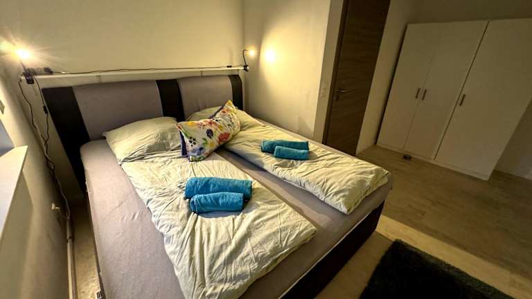 Die Ferienwohnung umfasst 3 Schlafzimmer, ein Wohnzimmer und eine voll ausgestattete Küche, die mit einem Kühlschrank und einer Kaffeemaschine eingerichtet ist. Zur Verfügung stehen zudem 2 Badezimmer mit Dusche und Haartrockner. Handtücher und Bettwäsche werden gestellt.