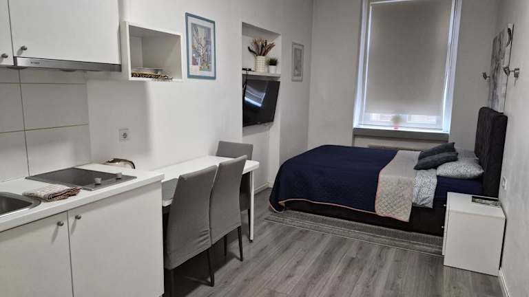 Die Apartments sind ausgestattet mit einer voll ausgestatteten Küchenzeile, einem Flachbild-TV sowie einem eigenen Badezimmer mit Dusche, kostenlosen Pflegeprodukten und einem Haartrockner. Zu den Küchengeräten gehören ein Kühlschrank, eine Mikrowelle, eine Herdplatte und ein Wasserkocher. Bettwäsche, Handtücher und Wäsche werden nach den Richtlinien der örtlichen Behörden gewaschen.