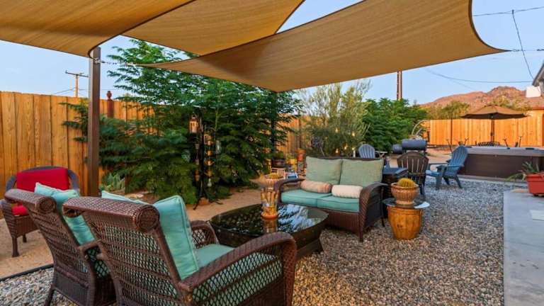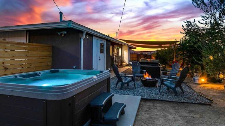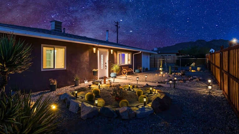 Die Unterkunft Haven Rock- Secluded Oasis and Sanctuary Gardens befindet sich in Joshua Tree und bietet eine ruhige Umgebung mit Blick auf die Berge.