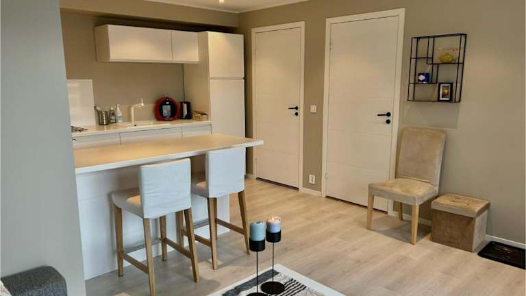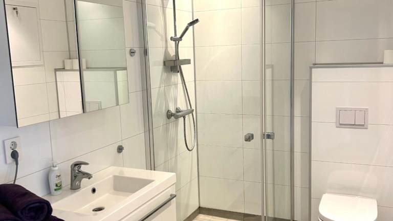 Die Ferienwohnung verfügt über ein Schlafzimmer, ein Wohnzimmer mit einem Flachbild-TV sowie eine gut ausgestattete Küche mit Kühlschrank und Geschirrspüler. Zudem steht ein Badezimmer mit Dusche zur Verfügung. Handtücher und Bettwäsche werden bereitgestellt.