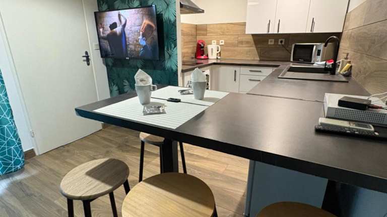 Havre de paix Climatisé Parking T2 ist eine Ferienwohnung, die mit einer Terrasse und einem Balkon ausgestattet ist und Stadtblick bietet. Die Unterkunft verfügt über einen kostenlosen Privatparkplatz, eine rund um die Uhr besetzte Rezeption und kostenloses WLAN.