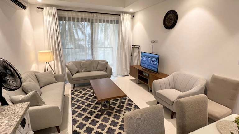 Hawana Salalah, Mamurah bietet eine Unterkunft mit Gartenblick, einer Terrasse sowie einem Balkon. Die Ferienwohnung ist klimatisiert und im modernen Stil eingerichtet.
