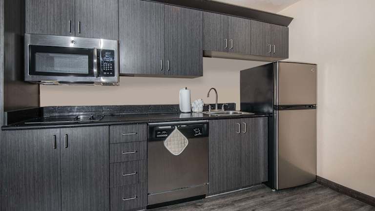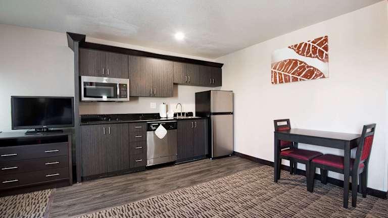 Die Zimmer sind klimatisiert und verfügen über ein Doppelbett sowie ein Sofabett. Zustellbetten können angefragt werden. Zu den Annehmlichkeiten zählen eine Kochnische mit Kühlschrank, Mikrowelle und Tee-/Kaffeemaschine, ein Schreibtisch, ein TV-Gerät mit Kabelempfang, WLAN (ohne Gebühr) sowie ein Badezimmer mit Dusche und Haartrockner. Es gibt sowohl Familien-, Nichtraucher- als auch Raucherzimmer verfügbar. Das Hotel bietet barrierefreie Zimmer mit speziellen Badezimmerausstattungen.