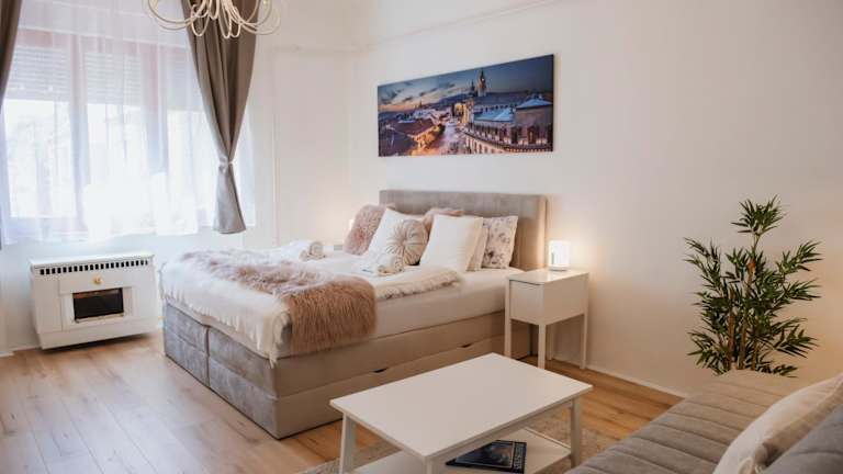 Heart of Pécs apartman free parking bietet klimatisierte Übernachtungsmöglichkeiten mit kostenlosem Wifi sowie Zugang zu einer Terrasse. Die Unterkunft ist familiengeführt und legt Wert auf Ruhe und Ordnung - Feiern wie Junggesellenabschiede sind nicht gestattet.