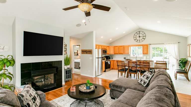 Die Heartland Ranch ist ein heimeliges Ferienhaus, das durch einen Garten und eine Klimaanlage besticht. Die Unterkunft verfügt über vier Schlafzimmer und drei Badezimmer und bietet Platz für gemütliche Ferien mit der Familie oder Freunden. Um die Gäste bestmöglich zu unterstützen, sind verschiedene Sicherheits- und Reinigungsrichtlinien vorhanden.