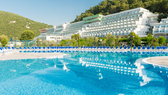 Das Hotel Hedera ist ein Familienhotel an der Adria, das sich in der Mitte des Hotelkomplexes Maslinica befindet. Vor dem Hotel liegt ein wunderschöner Garten mit verschiedenen Pflanzen und ein großes Schwimmbad. Neben dem großen Schwimmbad befindet sich auch ein kleineres für die Kinder.Dieses gemütliche Hotel hat den Standard von 4 Sternen und bietet seinen Gästen 275 gemütliche und klimatisierte Zimmer. Das Besondere von diesem Hotel ist der geheizte innere Pool, Wellness und Fitness, der mit dem Hotel Narcis verbunden ist. Das Hotel hat eine große Terrasse, die über dem Sommer als ein Tanz- Podium genutzt werden kann.
